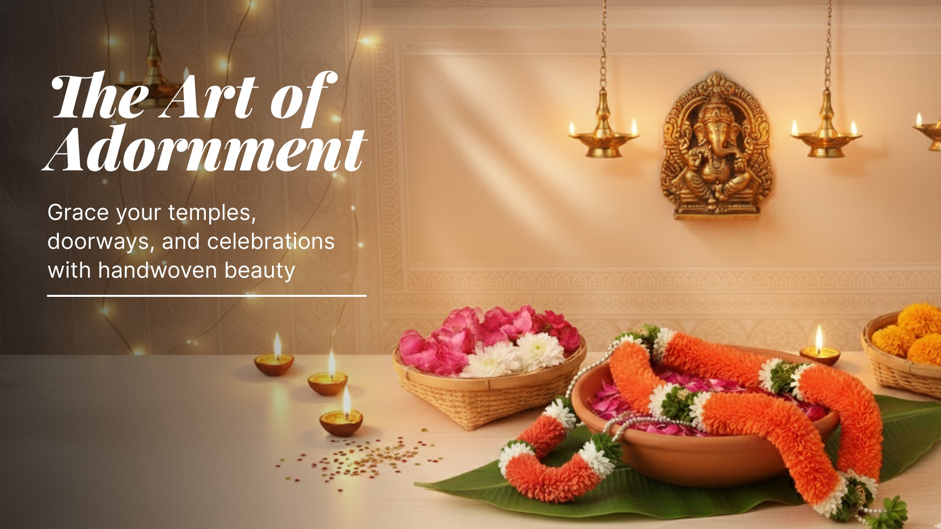 We create beautiful, fabric garlands and thorans designed for every home, temple, and celebration. Crafted to suit all spaces and occasions, our designs bring a perfect balance of tradition, elegance, and durability.